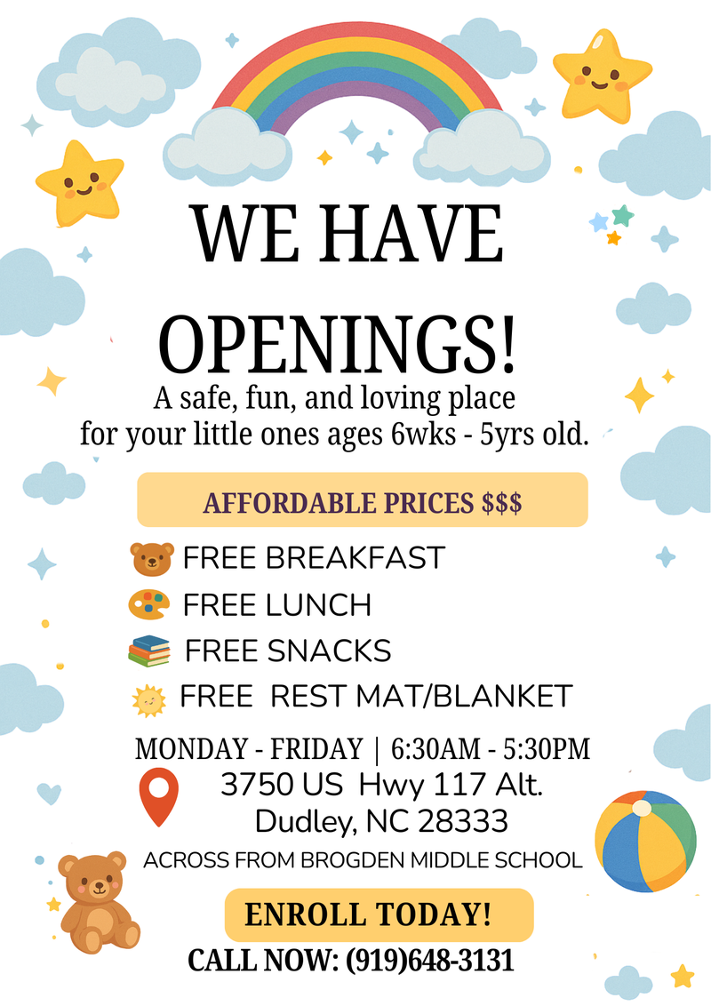 We proudly announce the opening of our newest childcare center. Join us for light refreshments, guided tours